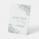 Rótulo peatonal Forest Green Simple Botanical Open Bar. Este elegante rótulo peatonal verde del bosque le da un toque natural a cualquier evento o espacio. Con un diseño botánico sencillo, combina el estilo con la funcionalidad, lo que lo hace perfecto para bodas, fiestas o entornos de negocios. La base robusta asegura la estabilidad, mientras que el color y el diseño llamativos atraen la atención sin abrumar el entorno. Ideal para guiar a los huéspedes o para mostrar información importante, este letrero es práctico y estético.