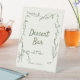 El original y caprichoso poster del Dessert Bar con un marco verde dibujado a mano, acompañado de un tipo de letra informal y manuscrita que capta perfectamente la emoción y la alegría de la ocasión.