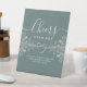 Elegante letrero de mesa de barra libre de boda vintage moderno en plata y verde salvia con corazón de cuerda simple y encaje floral dorado. ¡Salud!
