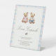 This time capsule sign features a timeless teddy bear design with pink and blue plaid accents, perfect for a twins Beary First birthday.