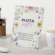 Mejore sus festividades de la ducha de bebé con nuestro encantador "Baby in Bloom" 8x10 cartel de rifa de pañales de mesa. Adornado con delicadas flores acuáticas y mariposas, este letrero encaja perfectamente con el caprichoso tema de su celebración. El elegante guión invita a los invitados a participar en el sorteo, añadiendo un elemento de diversión y anticipación. El texto de personalizable le permite personalizar el mensaje, asegurando claridad y calidez. Este letrero es perfecto para colocarse en la entrada o en la mesa de regalo, motivador a todos a unirse a la emoción.