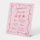 Expositor En L Bebidas con firma rosada y roja a mano caprichosa