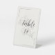 These modern wedding reception table numbers feature a warm ivory background with bold script numbering, slim border lines, and a delicate sketched floral illustration, creating a stylish focal point that coordinates beautifully with minimalist centerpieces and décor.