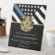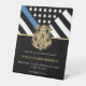 Este diseño incluye una bandera de la fuerza policial con rayas blancas y negras, y una delgada franja azul. Una gran manera de felicitar al nuevo graduado de la academia de policía. Personalizar con el nombre del oficial encargado de la aplicación de la ley graduado en oro. ¡Celebra este hito con estilo!
