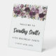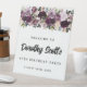 Hermoso y elegante cartel de bienvenida de 90 años. El frondoso borde floral contiene rosas púrpura profundos junto con rosas rubias y malvas rosadas. Las hojas verdes profundas y airosas le dan una atmósfera abierta y ventilada. El nombre del invitado de honor está escrito en un moderno guión. El texto restante es un tipo de letra clásico. Plantilla muy fácil de personalizar. Forma parte de la colección de rosas de malva de 90 años.