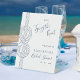 Este moderno y elegante letrero de bienvenida a la despedida de soltera náutica presenta un nudo de cuerda en el lado izquierdo, con la frase náutica apropiada “Anudando el nudo” en una fuente de escritura a mano de moda, en un esquema de color clásico blanco y azul marino.