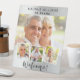 Crea tu propio collage de fotos único. Usa cuatro, cuatro de tu foto favorita. Personalice y agregue un nombre y una edad. Un fondo falso de aspecto plateado, texto negro.