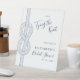 Esta moderna y elegante señal de bienvenida a la fiesta de despedida de soltera náutica presenta un nudo de cuerda en el lado izquierdo, con la frase náutica apropiada “Tying the Knot” en una fuente de escritura a mano de moda, en un esquema de color clásico blanco y azul marino.