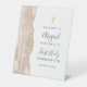 El borde izquierdo de este elegante cartel de bienvenida cuenta con una acuarela de marfil bordeada por un falso purpurina de oro. Una falsa cruz de Relieve metalizado dorado aparece encima del texto del personalizable, que combina escritura a mano, copperplate y tipografías cursivas en gris carbón sobre un fondo blanco. Personalízalo con el nombre del invitado de honor y la fecha.