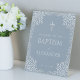 Expositor En L Bienvenida al bautizo de niño en polvo azul con ho