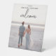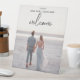 Boda de fotos personalizado Boda de entubación simple de mano negra bienvenida con mesa de peatones vertical Rótulo . Diseño minimalista, sencillo y moderno para tus fotos verticales de pareja.