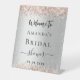 Expositor En L Bienvenida con brillo de plata y rosa dorado para