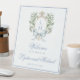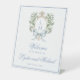 Esta señal de bienvenida tiene una cresta de hoja de acuarela que rodea su monograma e incluye los nombres de los novios y la fecha de la boda. Este diseño coordina con otros diseños de la Colección de Boda de Monograma de Cresta de Hoja