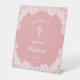 Expositor En L Bienvenida del bautismo rosa en encaje blanco