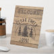 Los huéspedes podrán hacer uso de este letrero de mesa, de estilo independiente y personalizado, que incluye una plancha rústica de madera y un pintoresco diseño de árboles forestales silvestres. Ideal para alquilar un complejo vacacional o cabañas familiares, casas lacustres, casas rústicas de montaña y refugios naturales. La muestra se muestra en el tamaño de 8x10"; hay otros tamaños disponibles en la página de pedidos. ASISTENCIA: Para obtener ayuda con la modificación o personalización del diseño, el cambio de color, el redimensionamiento, la transferencia del diseño a otro producto o si desea coordinar elementos, póngase en contacto con el diseñador ANTES DE PEDIDOS a través de la pestaña del MENSAJE de charla de Zazzle, o envíe un correo electrónico a makeitaboutyoustore@gmail.com.