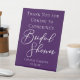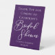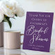 Este símbolo de pedestal de ducha de novia púrpura real presenta una hermosa tipografía blanca sobre un sólido violeta profundo para un fiesta nocturno en invierno. El guión minimalista y el color audaz hacen que la decoración de tu evento de novias se destaque de la multitud.