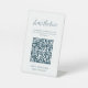 Blanco y la marina comparten el signo de amor QR Code peatonal. Coloca estos carteles en las mesas de recepción de tu boda para que los invitados puedan escanear las fotos que tomaron en la recepción de tu boda en tu álbum o en los medios sociales. Para generar un nuevo código QR en el diseño, agregue la URL de su álbum de bodas en línea o el identificador de medios sociales en el área proporcionada, usando la característica "personalizar". A continuación se añadirá un nuevo código QR al diseño.