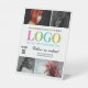 Firma promocional para peatones de tu pequeña empresa personalizada con tu logo, cuatro fotos de tu portafolio para mostrar tu talento y habilidades, un código QR y tu cuenta y sitio web de medios sociales. Decore su peluquería o salón de belleza con este cartel promocional personalizado en el que aparece su logotipo y fotos que muestran su trabajo. Signo de promoción perfecto para el mostrador de peluqueros, técnicos de uñas, maquilladores, artistas y más. Añade tu logotipo con un fondo blanco. Cartel promocional de fotos personalizadas con tu logo, fotos y medios sociales.