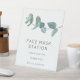Una señal minimalista de la estación de la máscara de la cara para su boda con una elegante rama de hojas azules de eucalipto sobre la tipografía. El texto se puede personalizar fácilmente a tus palabras. Se puede realizar una edición adicional, como cambiar los colores del fondo y del texto y el tamaño del texto, mediante la opción personalizar adicional. Por favor, envíeme un mensaje si necesita ayuda.