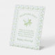 Colores dulces, suaves, azules y verdes de guisantes dulces creando un cartel de peatón sobre la mesa para que se muestre en el tocador de la ducha para informar a sus huéspedes del divertido juego de pacificador. Tan dulce como puede ser para un juego de ducha de bebé y este pedestal agrega otra pieza decorativa de festividad a cualquier mesa de evento.