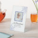 Recuerde la vida de su ser amado después de su muerte con el Elegante Rótulo Pedestal de Invierno Azul de Nieve Celebración de la Vida Funeral. Esta señalización conmemorativa del homenaje al invierno personalizado presenta intrincados copos de nieve azules adornando las esquinas con un fondo blanco y las palabras En recuerdo. Siéntase libre de cambiar el texto y personalizarlo con una imagen, nombre del difunto y fechas.