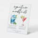 Este símbolo de la moda se burla del cartel de peatón con una simple tipografía negra sobre 2 lindas bebidas y sus ingredientes para su bar boda de verano. Una bebida Blue Hawaiian Sunrise y una bebida cosmopolita sin alcohol o Cranberry Cutie añaden un toque fresco a su menú de bar. Con los nombres de la pareja y la fecha de recepción.