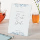 Este moderno cartel de boda para peatones para su libro de huéspedes incluye polvorientas hojas de eucalipto azules y un romántico tipo de letra de guión. Consulte otros elementos de la colección "Blue Eucalyptus".