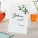 Este letrero neutro boda botánico señores baño peatonal proporciona un sencillo paladar rústico de plantas para coordinarse con cualquier tema boda tradicional. La vegetación mínima, con tonos oscuros y grises de elegantes hojas de eucalipto verde y follaje vegetal, junto con la caligrafía informal elegante, abren un ambiente minimalista a una celebración matrimonial clásica y formal.