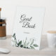 Este letrero peatonal del libro de bodas botánicos Neutral proporciona un sencillo paladar rústico para coordinar con cualquier tema tradicional de la recepción de bodas. La vegetación mínima, con tonos oscuros y grises de elegantes hojas de eucalipto verde y follaje vegetal, junto con la caligrafía informal elegante, abren un ambiente minimalista a una celebración matrimonial clásica y formal.