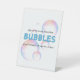 Un cartel para colocar con contenedores de burbujas al comienzo de tu ceremonia para que los invitados sepan qué hacer. Las burbujas son una opción bonita y ecológica para despegar.