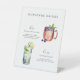 Firma Bebe Boda Bar Rótulo Pedestal. Características, margarita espumosa y mula arándano.