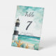 Hermosa mesa boda con faro náutico blanco y negro, pez estrella y conchas. Ideal para un boda. Las palabras se pueden cambiar para adaptarlas a sus propios detalles o requisitos
