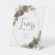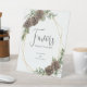 Este rótulo de boda sobre la mesa da a los clientes un toque de elegancia. El marco geométrico dorado está decorado con pinecones, pinares, vegetación y bayas de nieve. Encuentra productos coincidentes en la colección, o envíame un mensaje a través de Zazzle Chat si necesitas ajustes de diseño o más productos que coincidan.