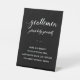 Este moderno y elegante rótulo blanco sobre bodas negros en el baño de los hombres es una gran idea para animar a los clientes a terminar y volver a la pista de baile. Esto es parte de la colección Alejandra.