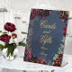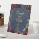 Un tono de joya azul marino y burdeos "Tarjetas y regalos", un boda auto-permanente cartel de peatón con una sinfonía de bordeaux profundos, frambuesa y peonías rojas borgoñas adornadas con aerosol de oro y brillantes líneas doradas se reúnen alrededor de un fondo acuarela azul marino con sus nombres y fecha boda numérica.