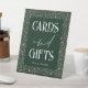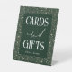 Letrero celeste verde esmeralda y boda de oro en velador "Tarjetas y regalos"