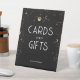 Cartel para peatones de boda negro y dorado celeste "Tarjetas y regalos"