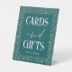 Cartel de velador de bodas celestes verde azulados y dorados "Tarjetas y regalos"