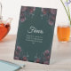 Elegante bosque oscuro, florido con flores de marrón y malva, la invitación a la boda es encantadora con rosas de marrón y rosa y vegetación sobre un fondo verde de bosque oscuro para un toque gótico boda. Las flores adornan las esquinas para un aspecto elegante, moderno y refinado.