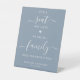 Elige un asiento, no un lado. ¡Todos somos familia una vez que el nudo está atado! Sencilla pero elegante caligrafía, este cartel de bienvenida boda presenta una caligrafía elegante en un azul polvoriento moderno. Personalizar este elegante signo de boda con sus nombres y fecha!