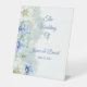 Este signo de peatón boda se muestra en una hermosa acuarela floral con colores azul y blanco, el texto se muestra en un color azul polvoriento. Personalizar este elemento cambiando el texto de ejemplo y colocando su información en él. Imagen de archivo. vecteezy.com