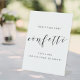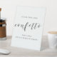 Cartel de la mesa de confeti boda diseñado por personalizados que presenta un diseño moderno y sencillo en blanco y negro.