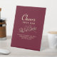Elegante y moderno letrero de mesa de Bar Abierto para boda minimalista con rojo borgoña, con pareja romántica dibujada a mano y escritura caligráfica simple.