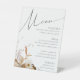 Presentamos nuestra impresionante flor silvestre de otoño | Cartel de velador del menú boda, que adopta un diseño sencillo y moderno que refleja la belleza de la naturaleza. Con flores de acuarela de otoño prensado y hojas de terracota, captura la esencia de los tonos naranjas quemados en octubre, creando un diseño minimalista y clásico que exuda calidez y encanto. El diseño tiene un toque de elegancia que inspira un delicado ambiente vintage, donde las hojas de color verde salvia, los acentos de cobre oxidados y los tonos de tierra floral crean un estilo único e inolvidable. Disfrute de la belleza de su día especial con un producto que capta un diseño mínimo pero único y que le permitirá disfrutar de una experiencia boda verdaderamente memorable. Contáctenos con cualquier pregunta sobre el diseño, y le ayudaremos a hacer el boda de sus sueños.