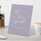 Este chispeante espumoso eslavanda boho despide la señal del boda es perfecto para un boda minimalista. El colorido y polvoriento diseño bohemio moderno presenta una caligrafía rústica sencilla con un estilo único y clásico. Personaliza el signo de salida de tu boda de brillo de let love con el tiempo de despido.