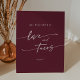 Este boho moda de amor rojo borgoña y el cartel de boda del bar del taco es perfecto para un boda minimalista. El moderno diseño bohemio-rojo, de color marrón oscuro, presenta una caligrafía rústica sencilla con un estilo único y clásico. Este letrero es perfecto para una boda, fiesta de compromiso, cena de ensayo o ducha de novia.