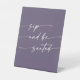 Este sorbo de ciruela de moda boho y el signo boda sentado son perfectos para un boda minimalista. El moderno diseño bohemio de la joya morada oscuro presenta una caligrafía rústica sencilla con un estilo único y clásico.