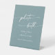 Esta seña de la cabina de fotos verde azulada de bodas de moda boho es perfecta para un boda minimalista. El moderno diseño bohemio azul verde y colorido presenta una caligrafía rústica sencilla con un estilo único y clásico que recuerda a la playa, el océano y la costa de verano. Personaliza tu cartel fotográfico con tu etiqueta para los medios sociales.