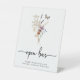 Rótulo Pedestal Bar Boho Open. Este elegante y elegante cartel de bar abierto cuenta con hermosas acuarelas pintadas a mano y flores silvestres dispuestas como un bonito ramo sobre un fondo blanco. Encontrar elementos coincidentes en la colección de ducha de flores de flores silvestres del Boho blanco.