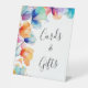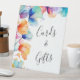 Colores florales y luminosos con tonos azules, naranjas y morados en este Rótulo de tarjetas y regalos. Vea nuestra Colección de Bodas de acuarela floral brillante para productos que coincidan.